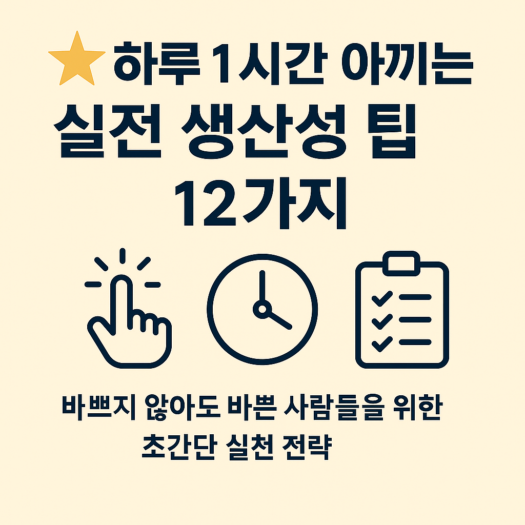 오늘은 제가 직접 적용해보고 효과가 좋았던 실전 생산성 팁 12가지를 정리해봤습니다.